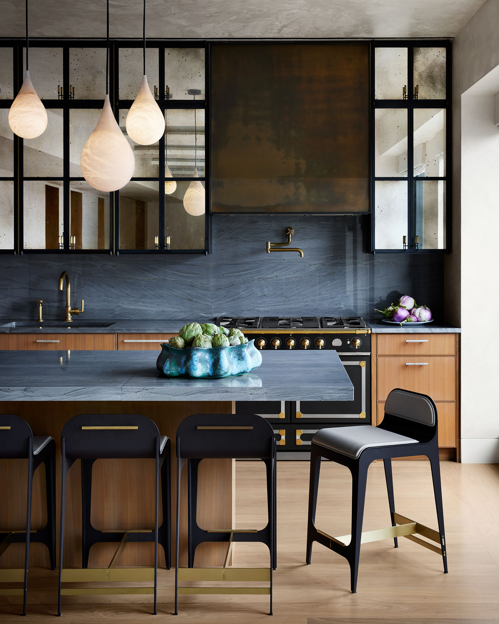 Are you in love because I am? This kitchen by DHD Architecture & Interior Design from their Flatiron Triplex Penthouse project is pretty special. I think the use of the mirrors in the uppers is so beautiful and undoubtedly makes this space feel bigger but also textured. Please note the dark bronze hood;)