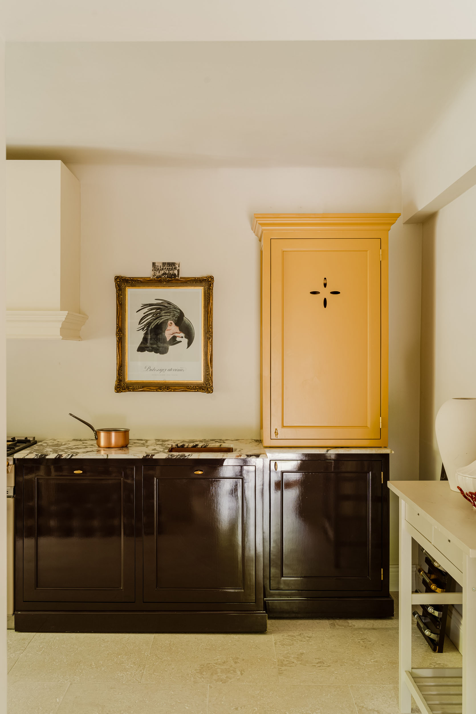Here’s what I’ll say about that yellow/green neutral color: it was wall color of our primary bath when we moved in, and it made us look absolutely sickly at night. We changed it ASAP. I know this post is about kitchens and not bathrooms, and most people don’t spend a lot of time looking in the mirror in the kitchen, but most “inspo” photos you see will be shot during daylight, and colors act very differently with only interior lighting. Definitely do not put that color on the ceiling, or it’ll cast the worst reflected light ever onto everything. I *do* love that color in a textile or painted piece of furniture, though.