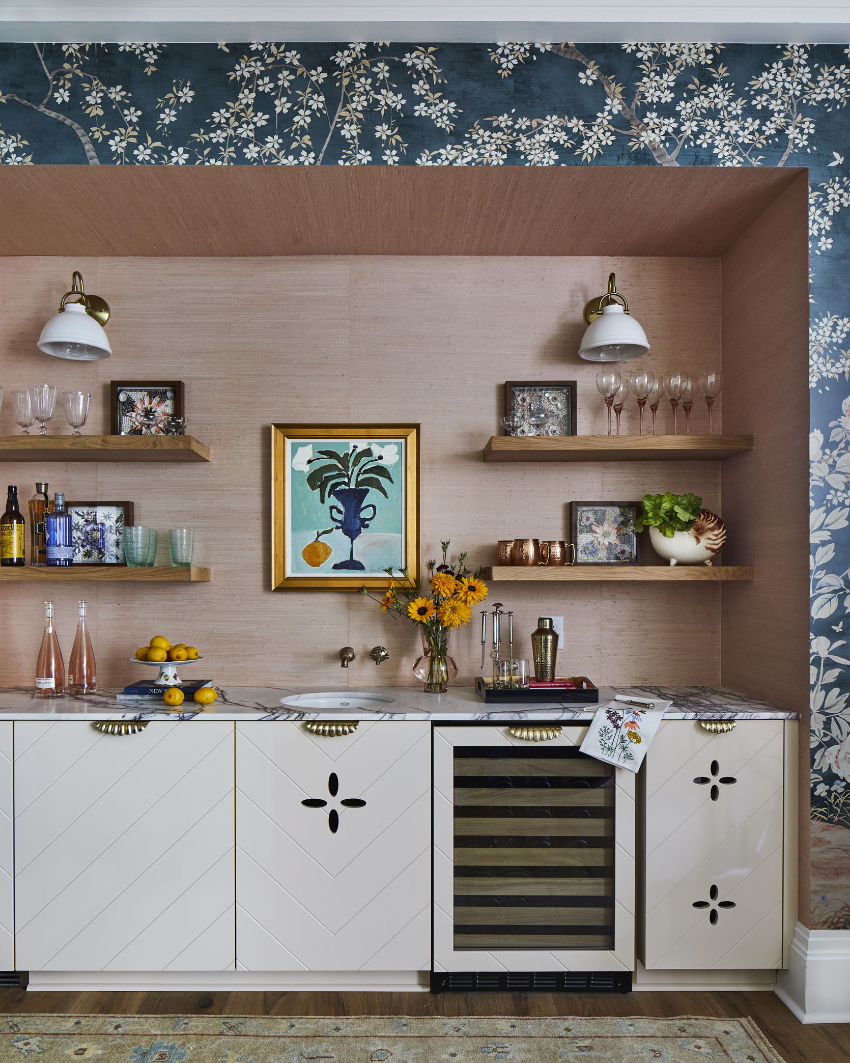 However, if you don’t have the space or budget for a big nature art moment, you can always add it in an unconventional way! In this kitchen by Sophie Dow Donelson and Celia Bryson Design, that Gracie wallpaper sample hung on the end of the cabinetry is such a fun addition that’s totally unexpected (in placement and material). You don’t always need a big piece to make an impactful statement.