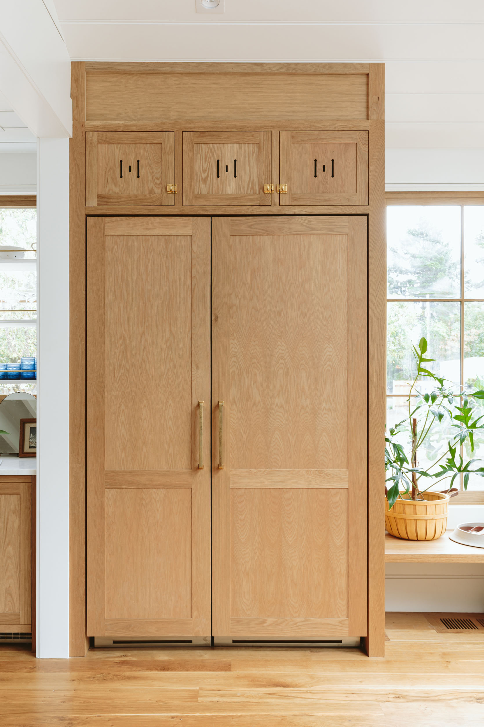 For a more classic take, designer Meta Coleman added them to all of the top upper cream cabinets. Not only do they add visual interest but they draw your eye up, helping you take the full space.