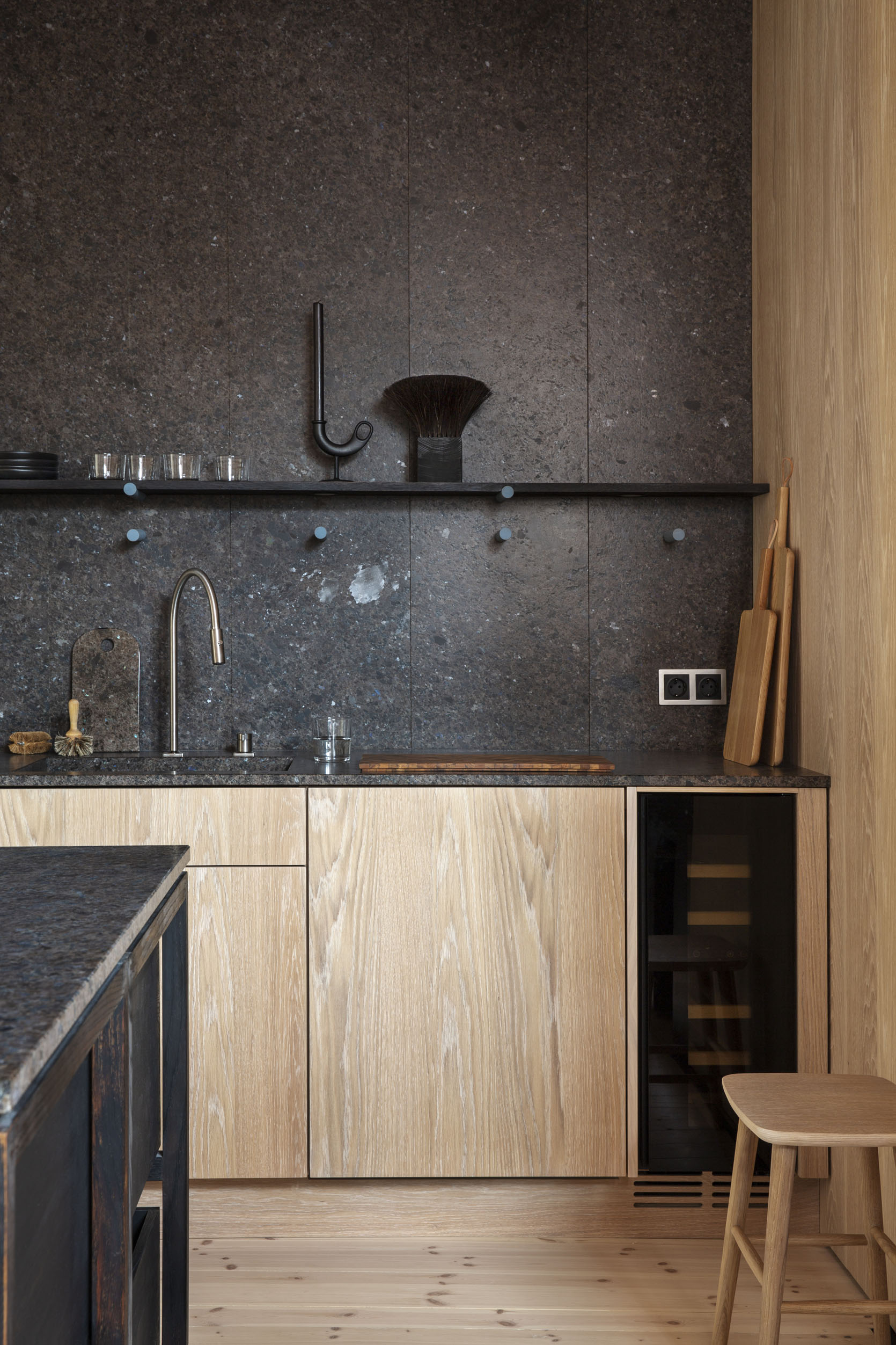 This next kitchen by Hamran is a knockout. What a gorgeous modern, minimalist kitchen that’s only enhanced by those large-scale tiles on the backsplash. This kitchen and the one before prove that this “trend” works for any style. Also how great and unexpected are those blue pegs!