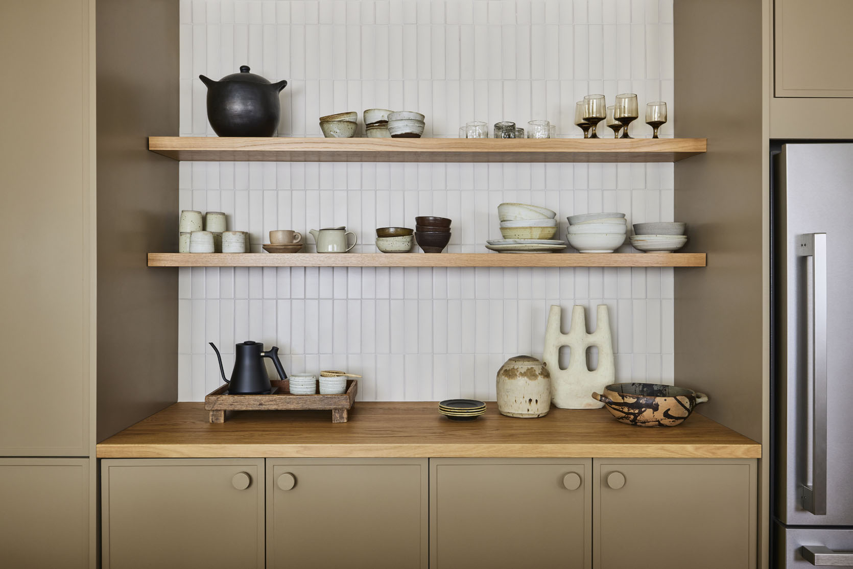 Now, Rachael Wilshaw designed this beautiful kitchen with two special edges! I love how these more classically traditional stone edges contrast with the rectangular tile around the range. There are almost too many special elements in this kitchen to point all of them out. But please note the mix of stone and wood open shelves. So good:)