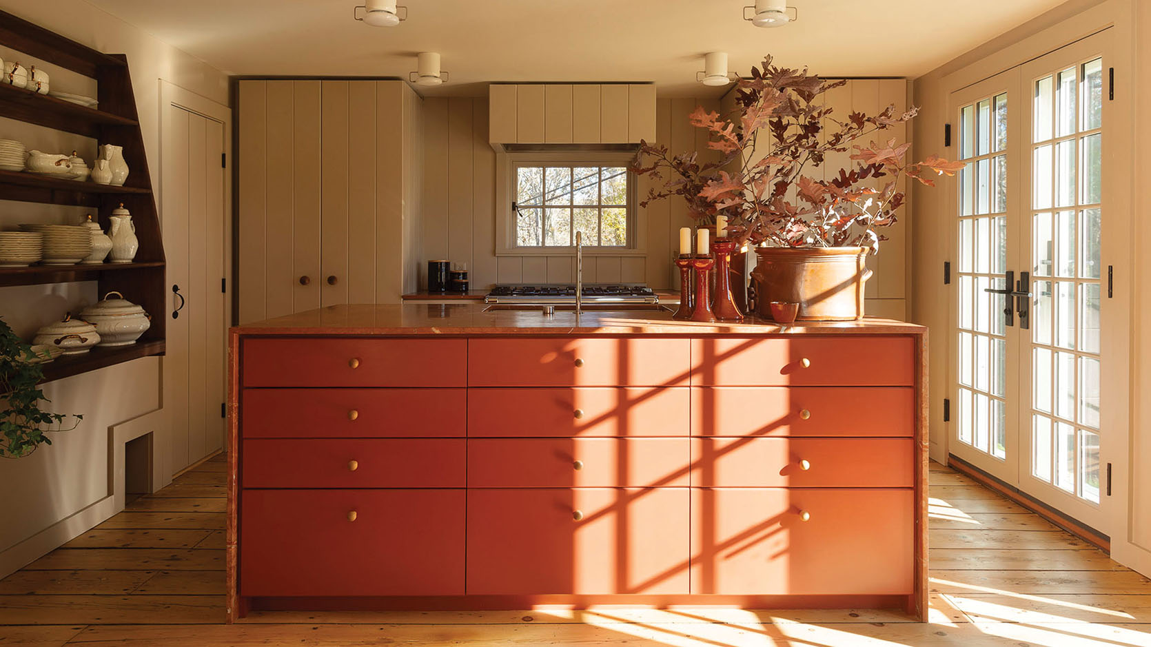 Workstead is an EHD favorite lighting brand and design firm and I think you can see why. Their design walks the line between modern and classic, yet so so inviting and unpretentious. This kitchen is the perfect example of that with its warm taupe-y cabinet color. It’s neutral, a little moody, but still easy to work with a variety of other colors…like an orangey rust-colored island.