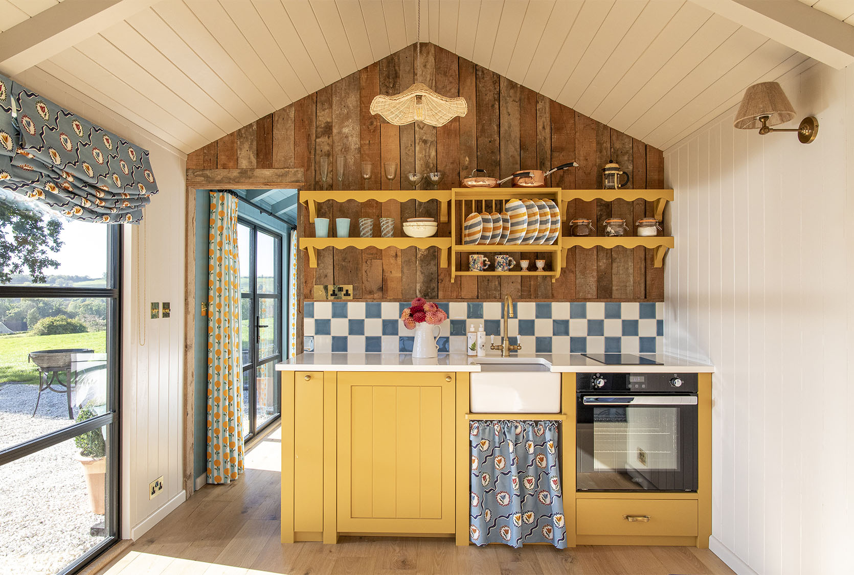 Lastly, we have this boldly sweet and colorful kitchen designed by Catherine Earp. It is one of two luxury huts called Aller Dorset, located in the Dorset countryside of England. So while this isn’t anyone’s full-time kitchen, it is a great source of inspiration, showing that bold colors, patterns, and sweet details are worth going for if that’s what you are drawn to. How could you not smile every time you walked into a kitchen that looked like this? Impossible.